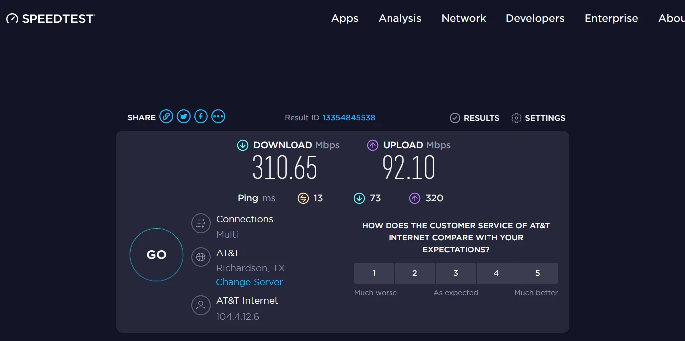 - आता एकदा चाचणी पूर्ण झाल्यावर ॲप तुमचे डाउनलोड आणि अपलोड गती तसेच तुमच्या पिंगसह परिणाम प्रदर्शित करेल.